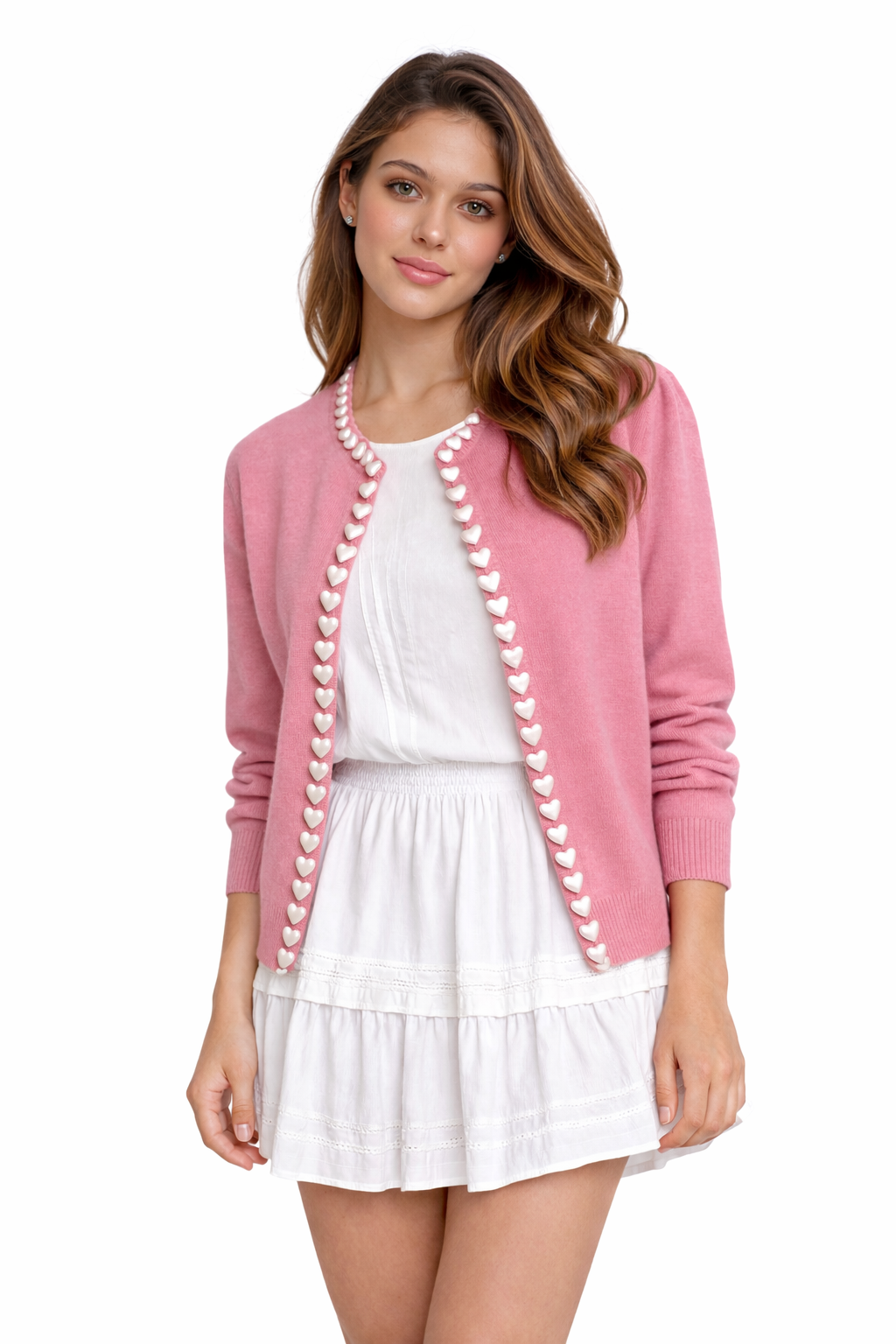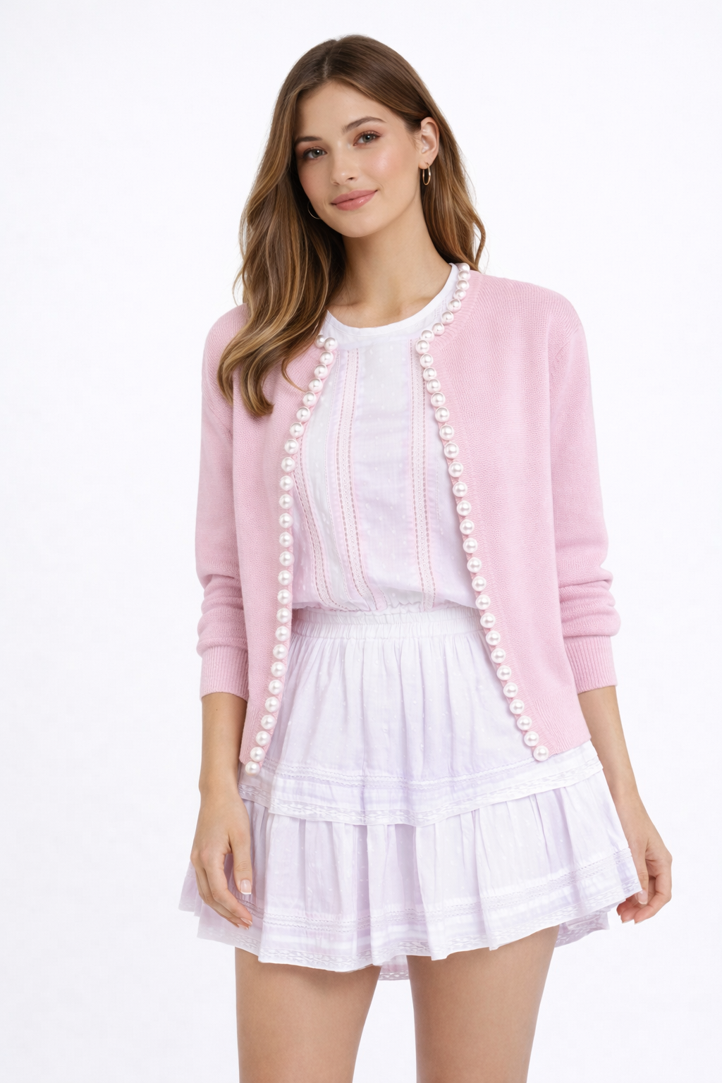 Add Charlotte pearl trim cardigan in Pink to the cart