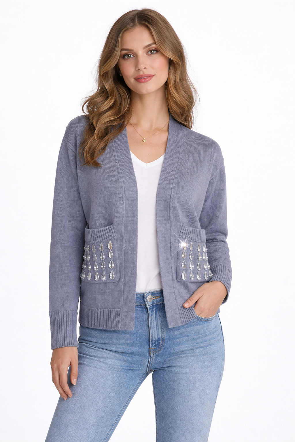 Add Mabel teardrop pearl cardigan in grey to the cart