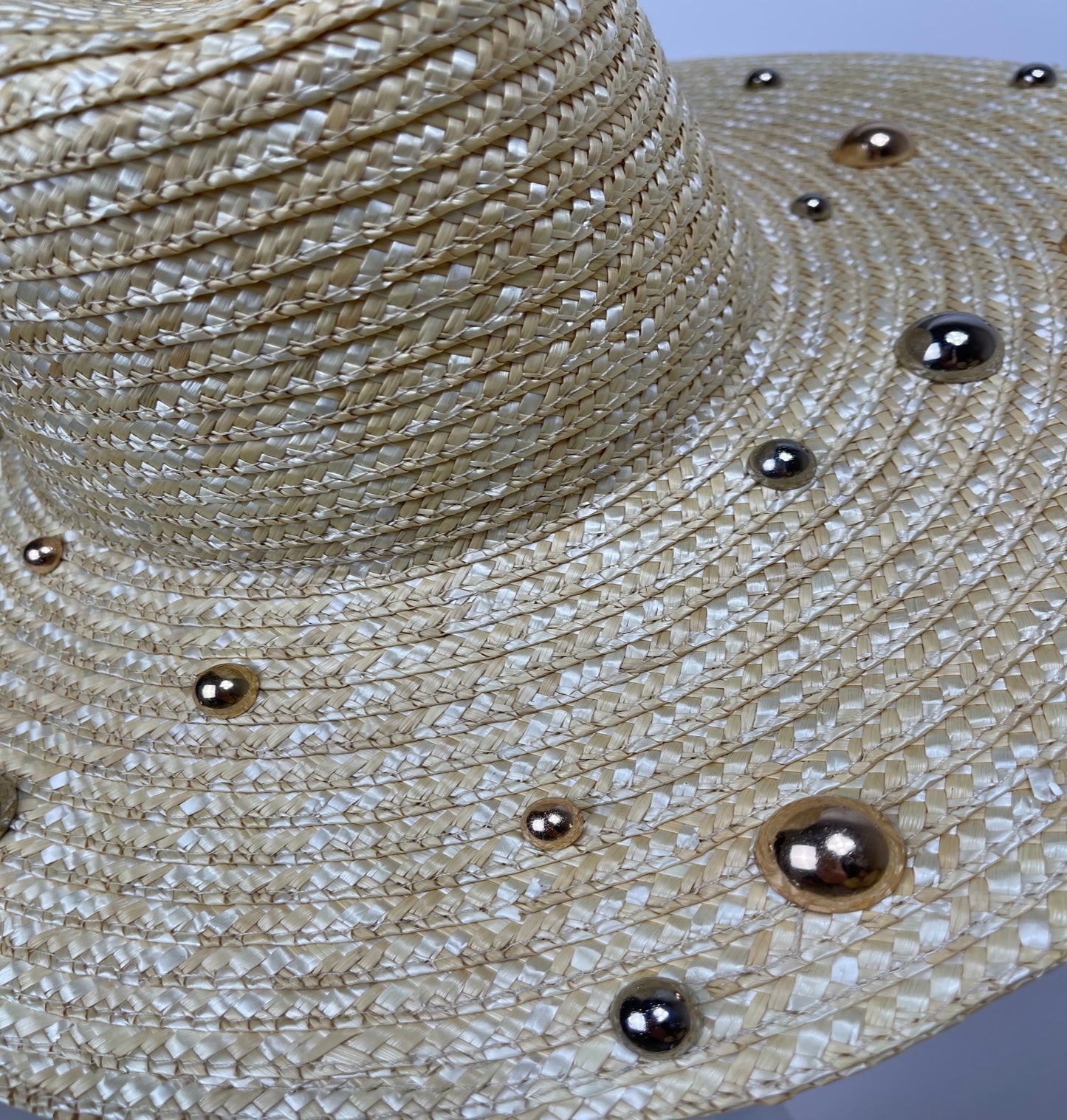 This Amara mixed metal sun hat is perfect for days at the beach. Handmade from 100% raffia and featuring mixed metal domes, it provides both luxury and sun protection with a wide brim and beach style.