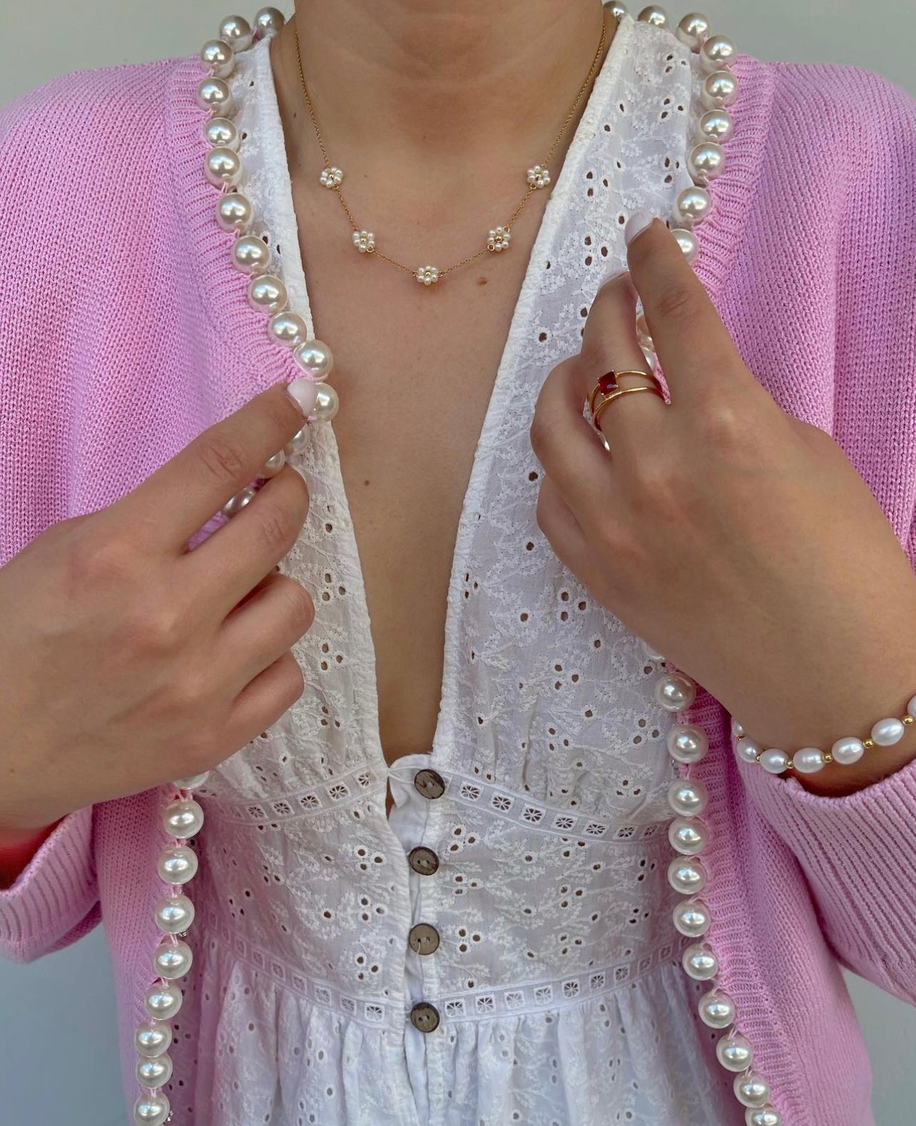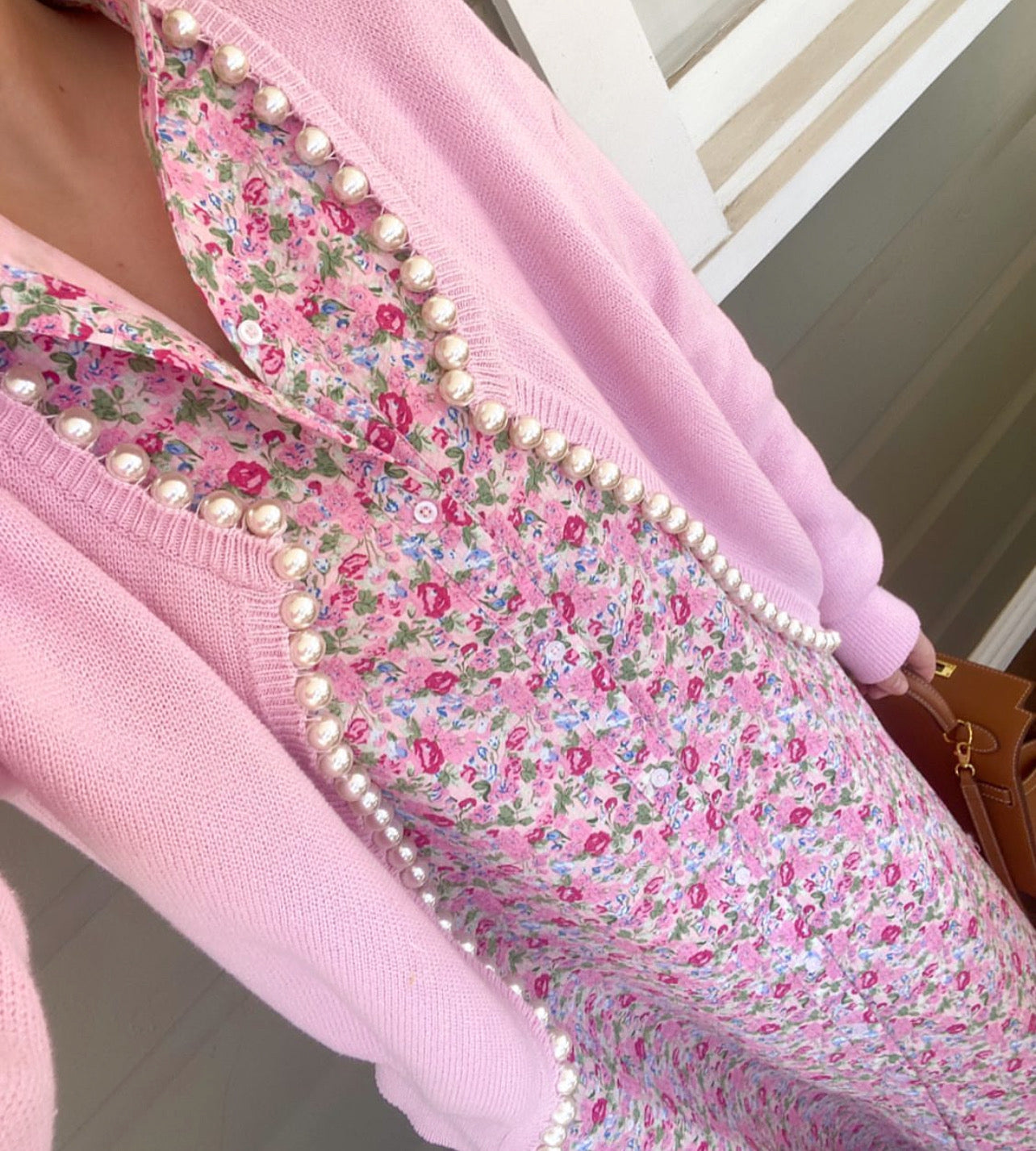 Charlotte pearl trim cardigan in Pink