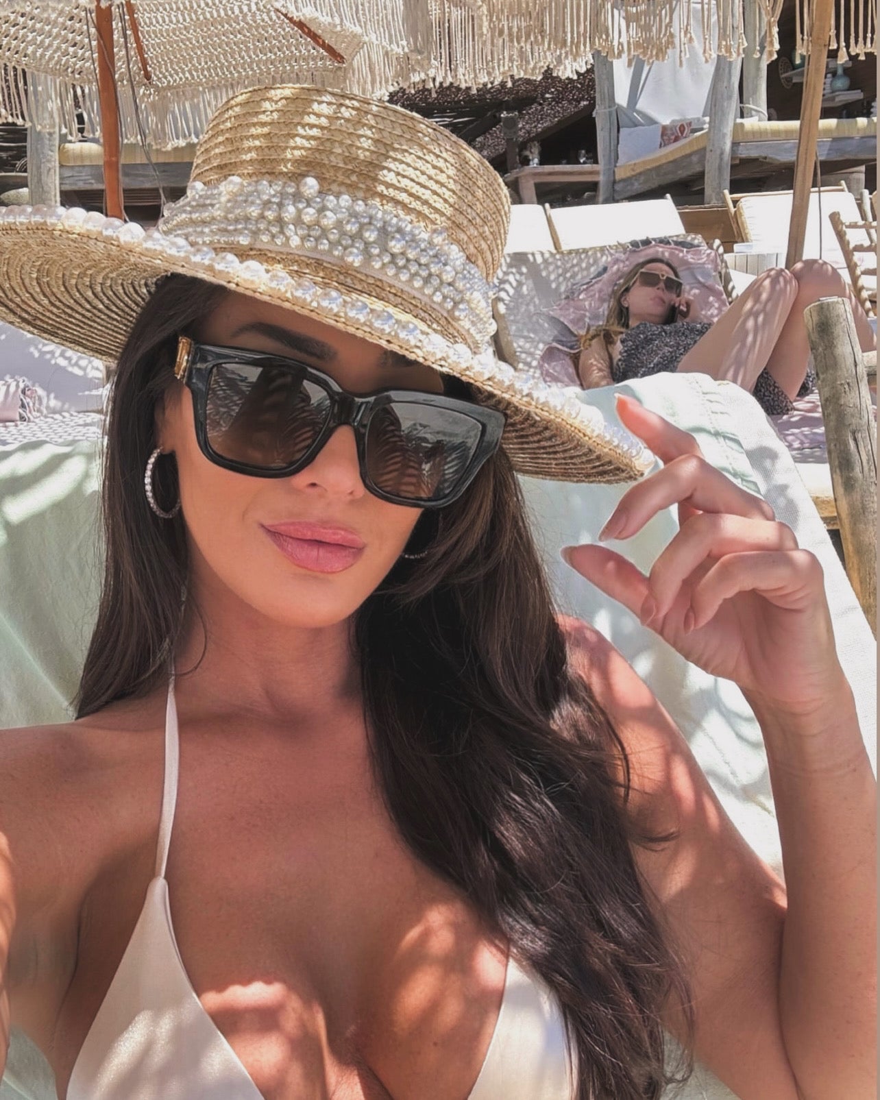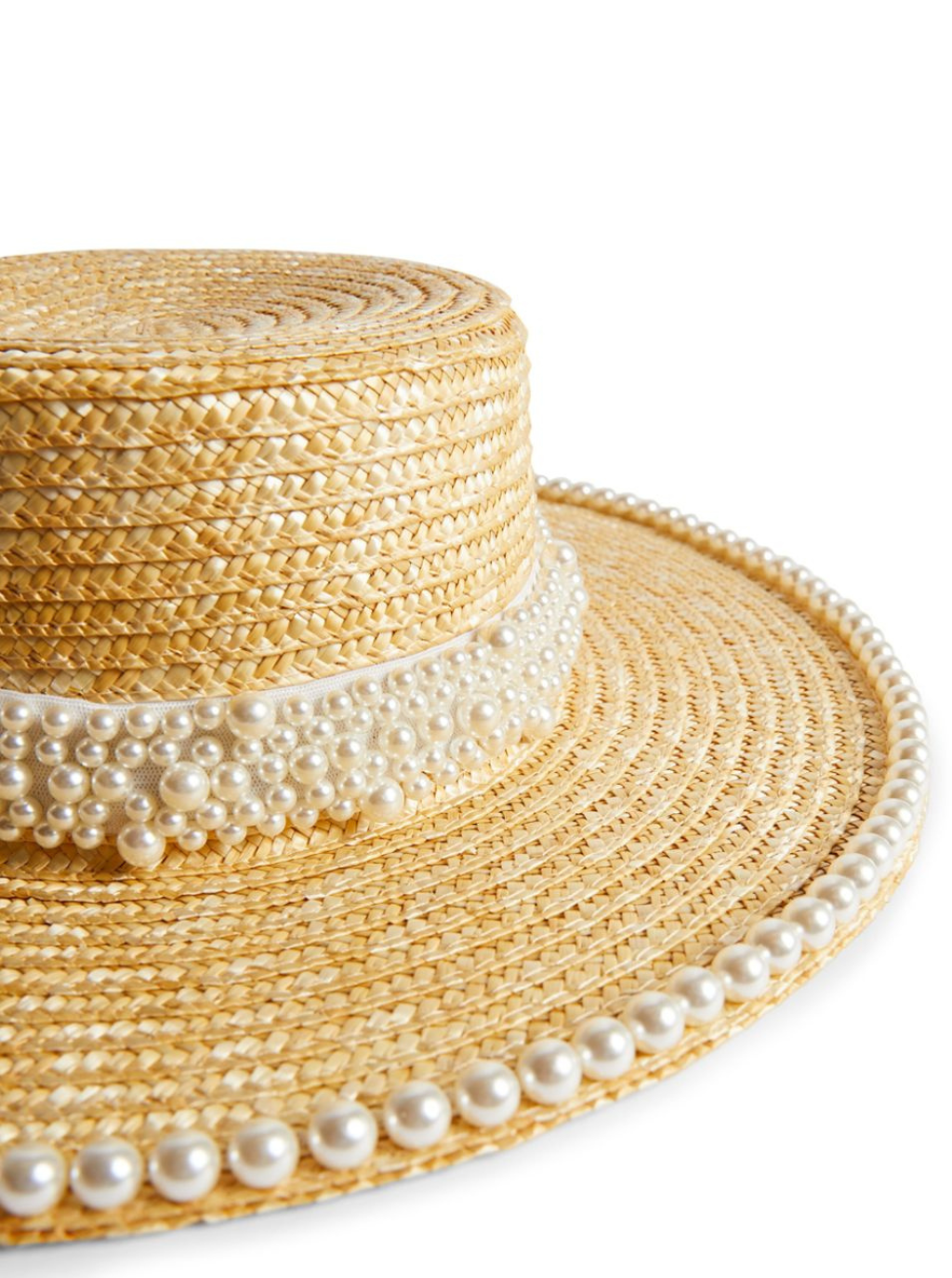 Our Petra pearl-embellished straw sun hat is a summer essential! Crafted with organic straw and adorned with a luxurious faux pearl, this bestseller is sure to turn heads on the beach and beyond. Pack it for a luxurious, beach-ready accessory!
