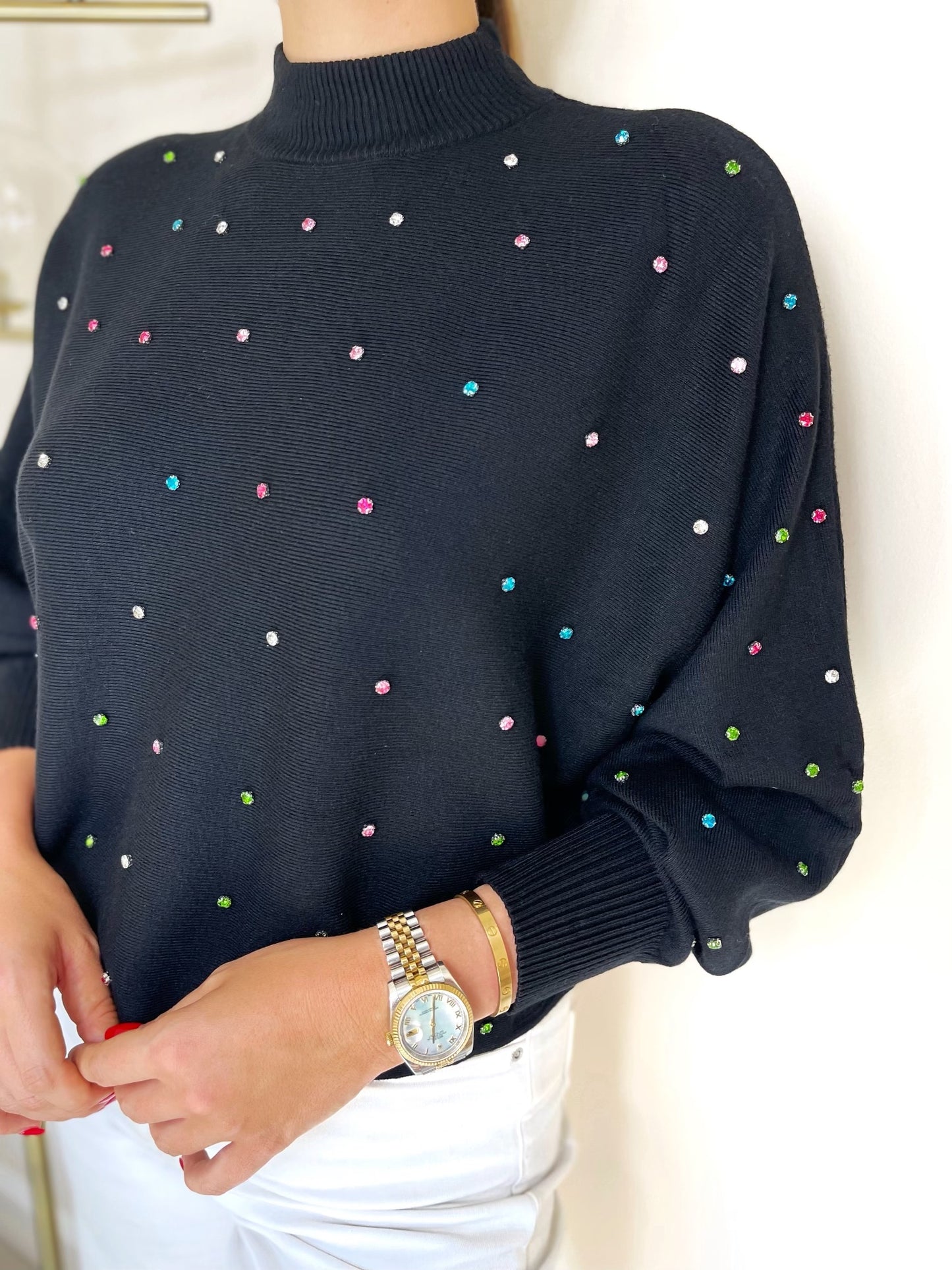 Evie rainbow crystal jumper-Black