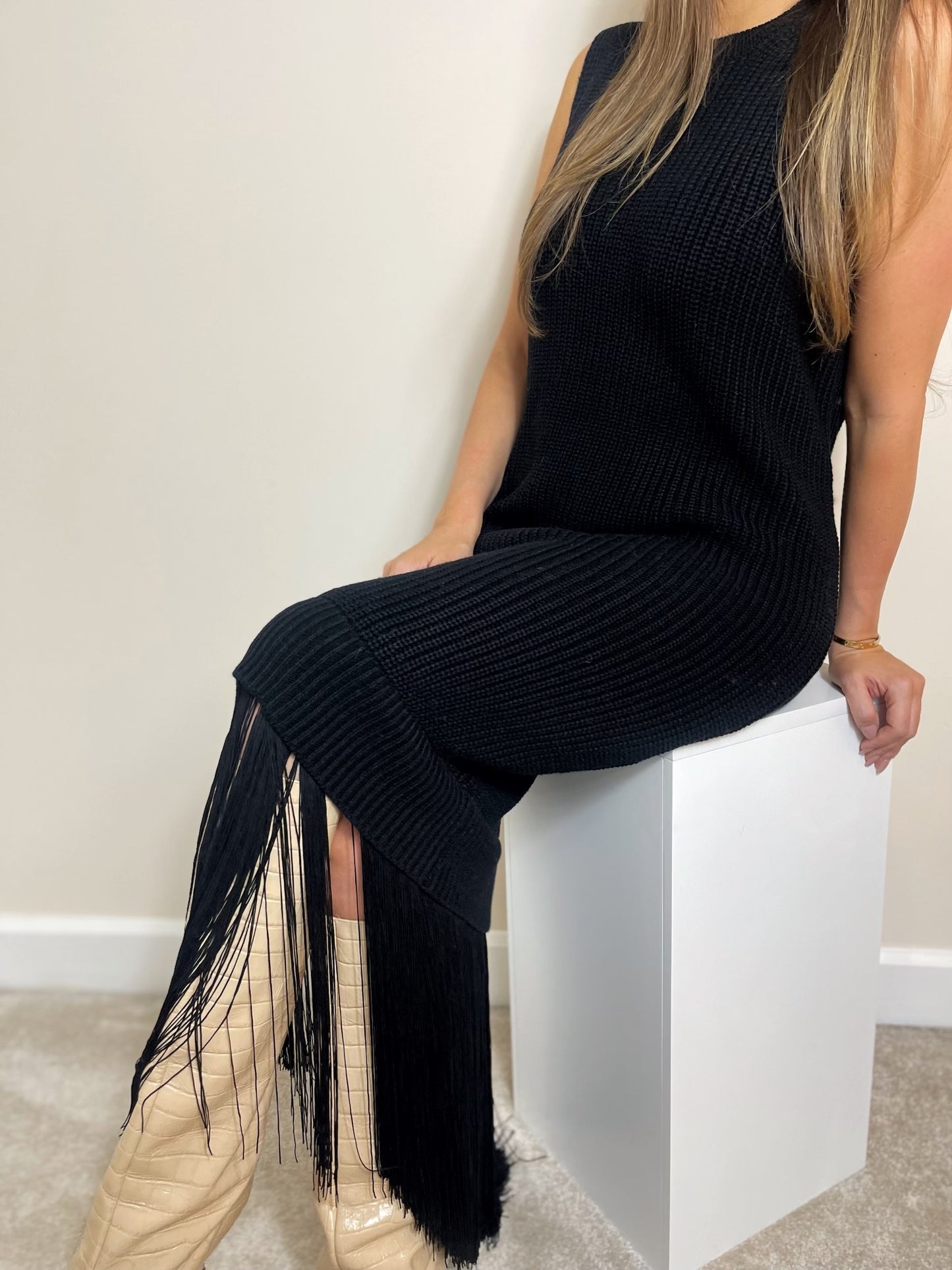 Simone fringe dress- Onyx