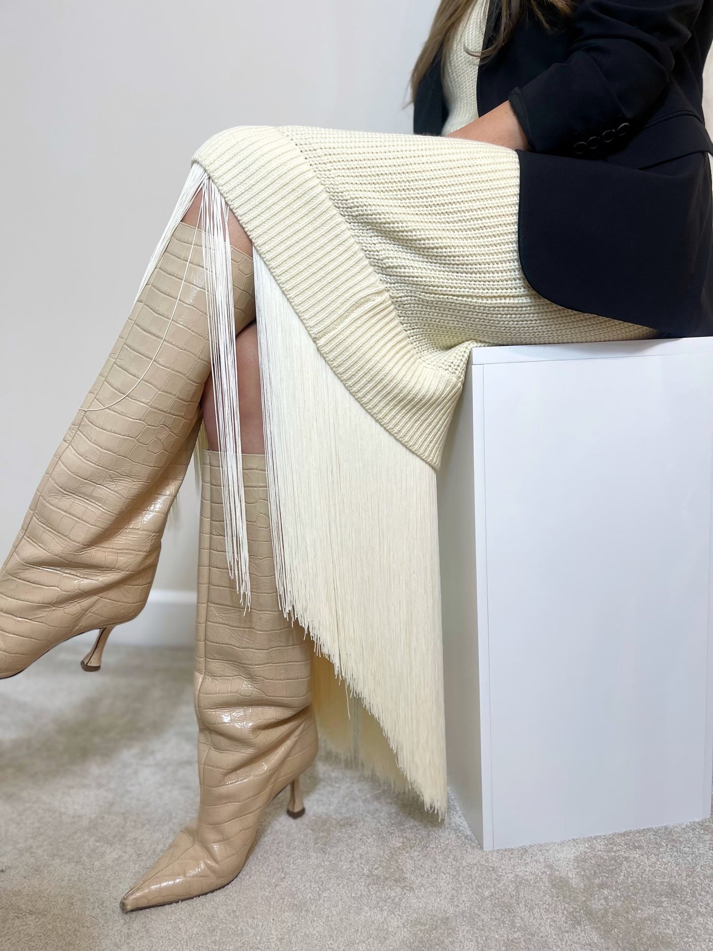 Simone fringe dress- Cream