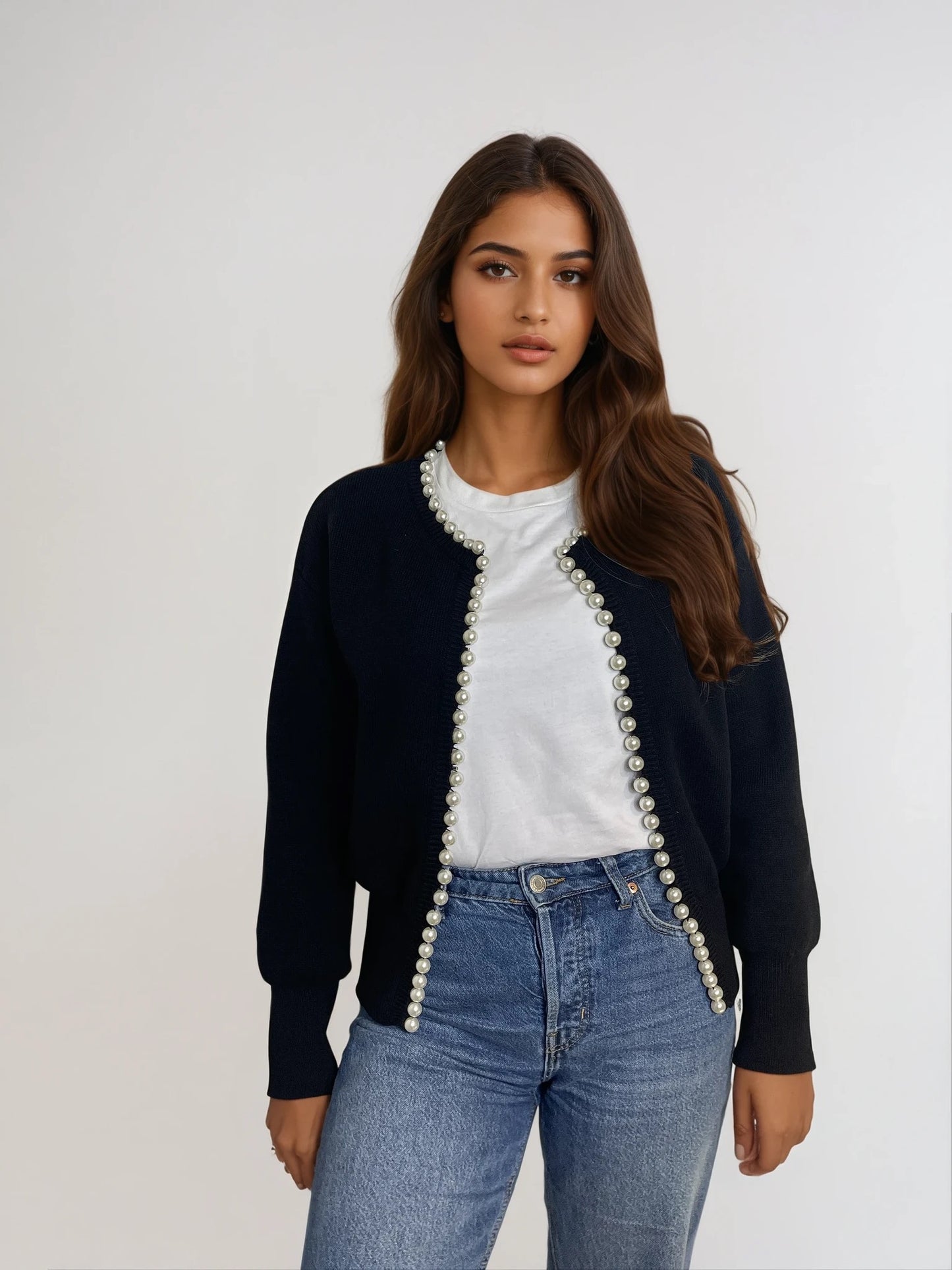 Add Charlotte pearl trim cardigan in Navy Blue to the cart