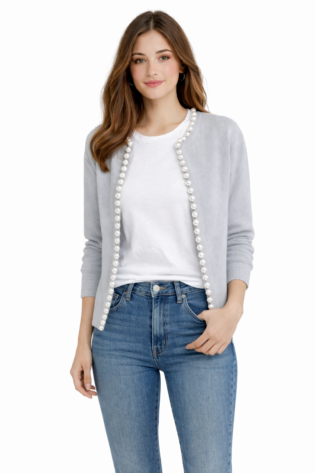The Charlotte pearl trim cardigan is an updated take on a classic wardrobe staple. Crafted from organic cotton, it features a pale yellow hue perfect for the Spring. Make a chic statement with the pearl trim detailing.