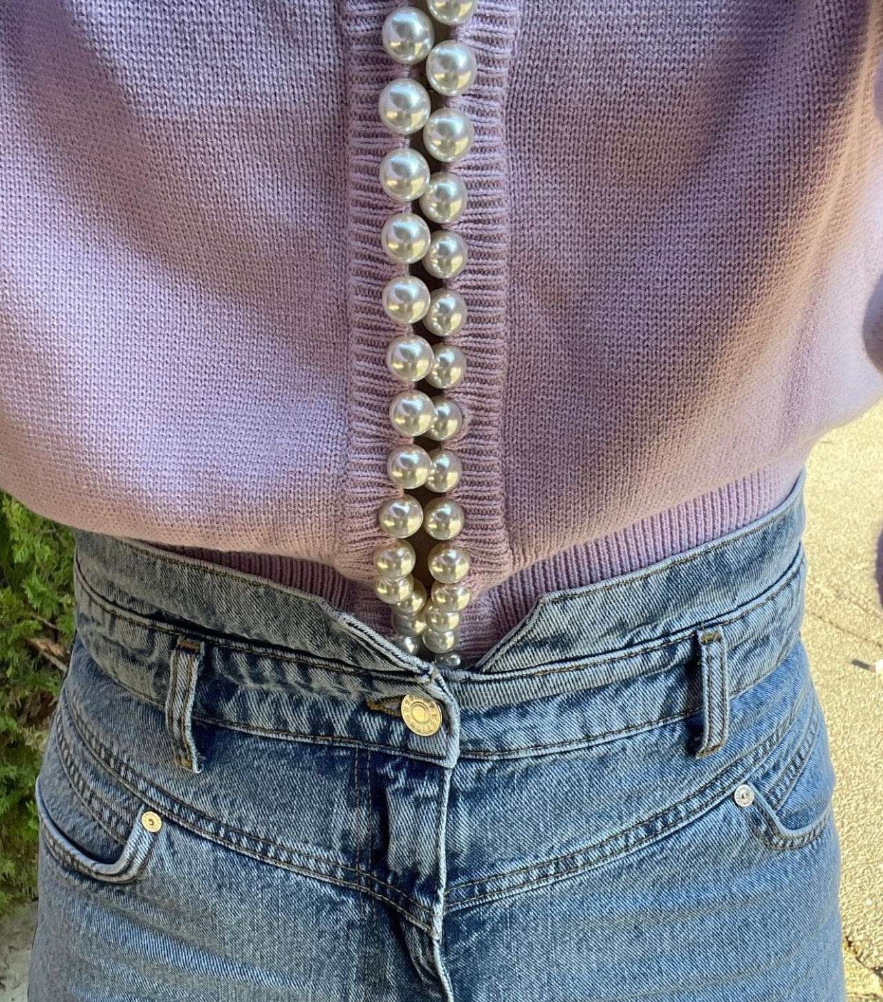 Charlotte pearl trim cardigan in Lilac